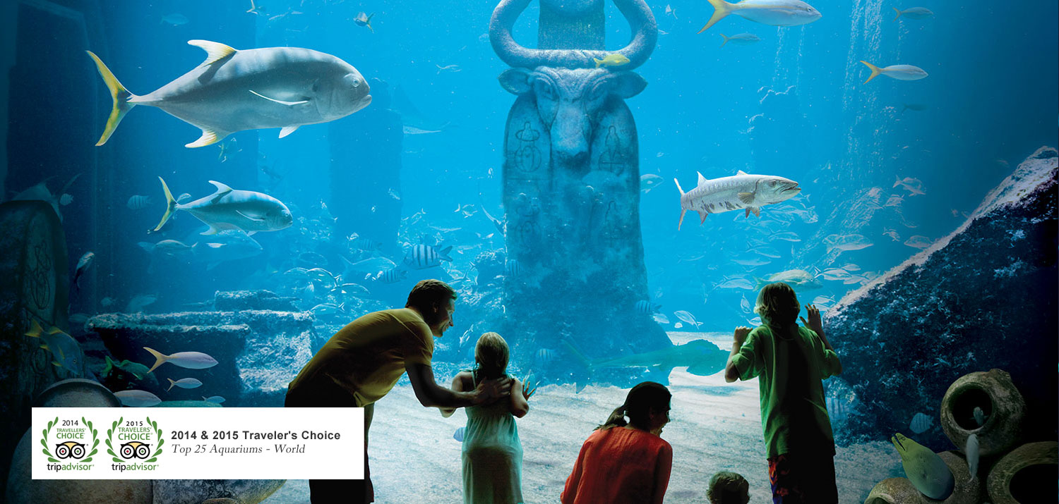 Дизайн огромной территории комплекса дает возможность добраться до любого развлечения в считанные минуты, прогуливаясь в прохладной тени зеленого сада, а до большинства ресторанов, казино и любого отеля можно дойти даже не выходя на улицу. Пейзаж дополняют ландшафтные пруды и речки с тропическими рыбами, скатами, черепахами и даже акулами среди тропической цветущей зелени.