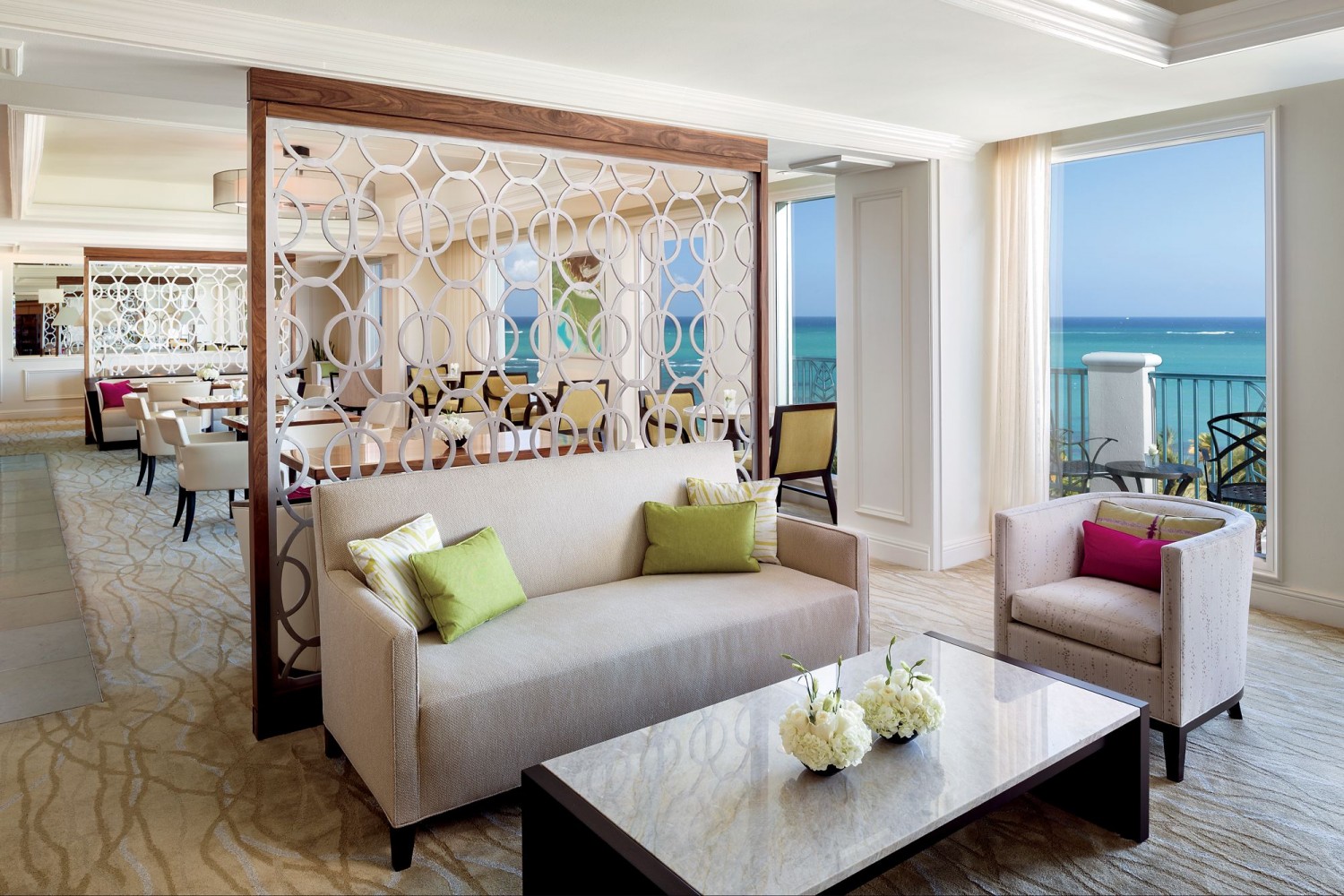 - The Ritz-Carlton Suite - 185 кв.м. Лучший Suite в отеле. Благодаря трем балконам (в спальне, гостиной и столовой), из номера открывается панорамный вид на океан. Отдельная спальня с кроватью King-size. Примыкающая ванная комната с джакузи и отдельным душем. Просторная гостиная сочетает в себе столовую зону и зону отдыха с комфортабельной мебелью. Звуковая система Harmon Kardon, Bose SoundDock™ для iPod, плазменная панель и DVD-плеер. Рабочий стол. Доступ в Ritz-Carlton Club Lounge.