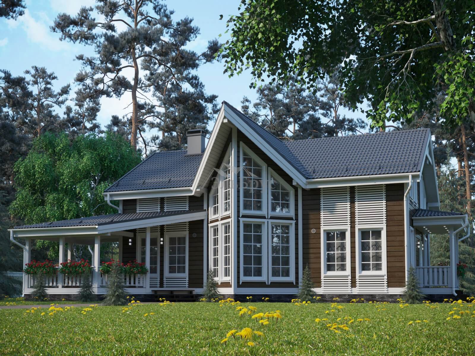 Солидный внешний вид дому придают современные материалы. Они делают постройку завершенной, гармоничной и эффектно вписывающейся в окружающую среду.