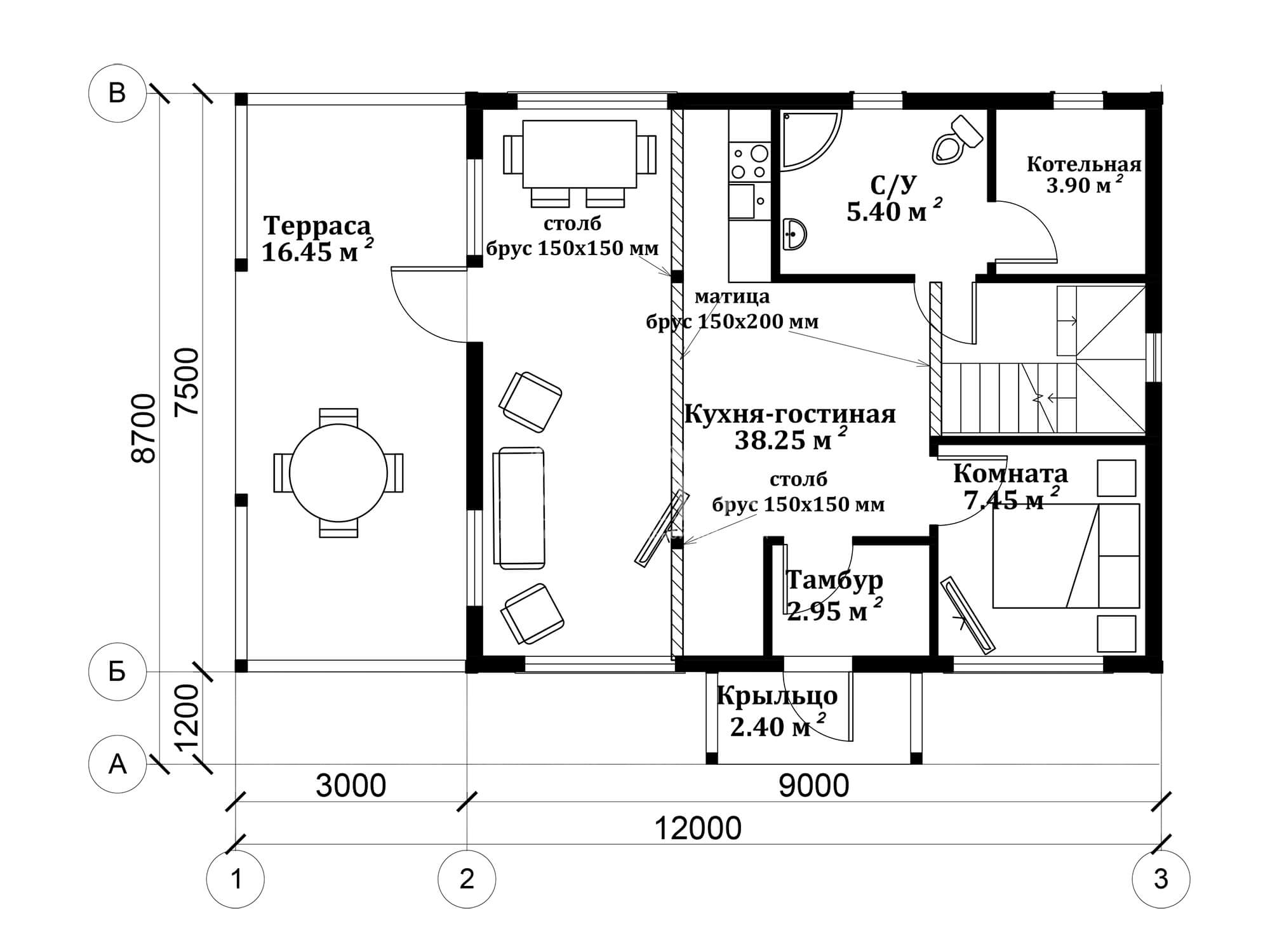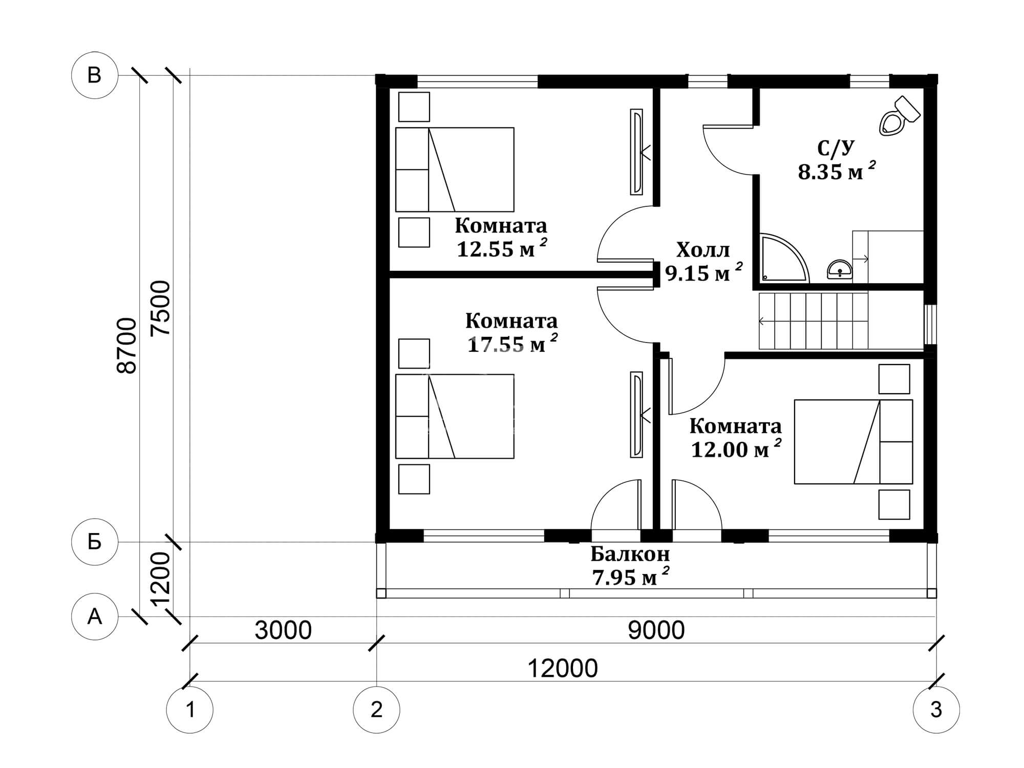 • Высота 2-ого этажа: 2,5 м